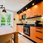 Een ingerichte kitchenette in het appartement is voorzien van een oven en een vaatwasser.